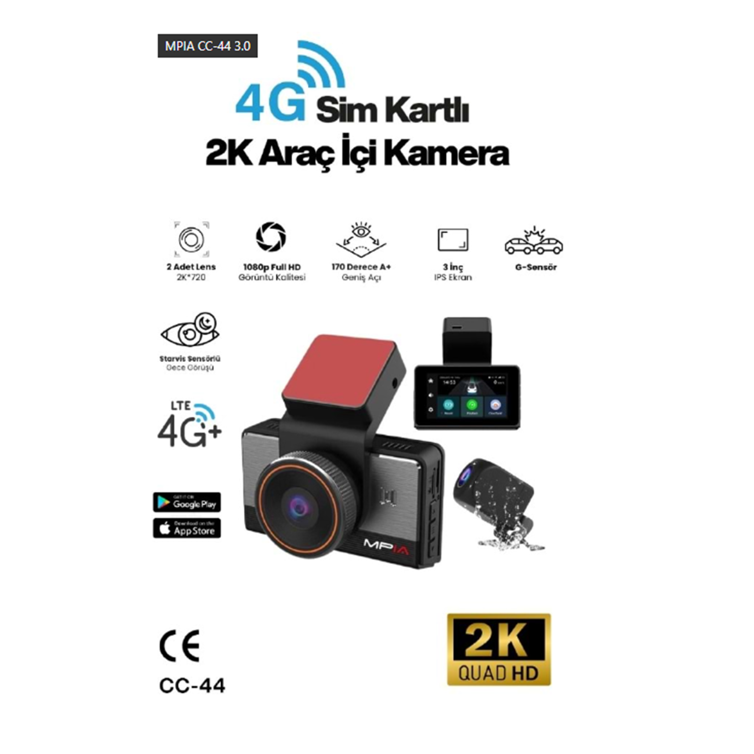 MPIA CC-44 3.0" IPS Ekran 2K QUAD HD Ön Kamera 4.5G Araç Kamerası